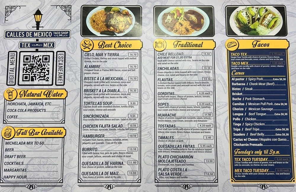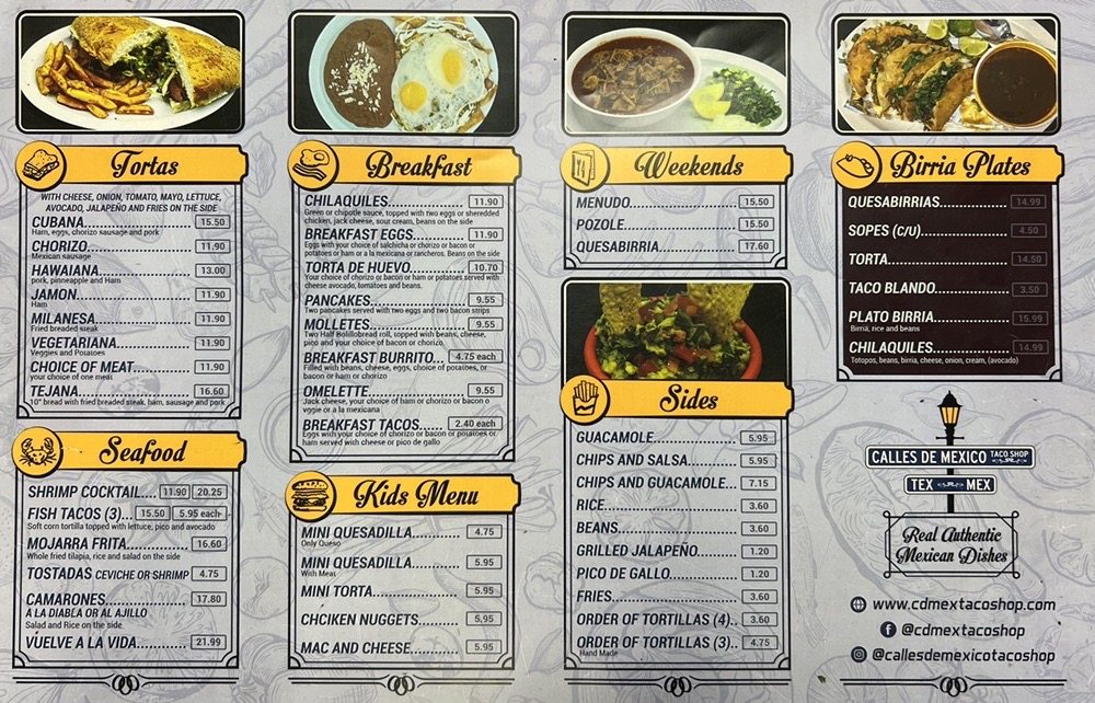Welcome to Calles de Mexico Taco Shop Tex or Mex, your ultimate destination for authentic Tex-Mex and Mexican seafood delights, located in Lewisville, TX. This cozy establishment may seem small from the outside, but it welcomes diners into a spacious setting, perfect for families and groups.